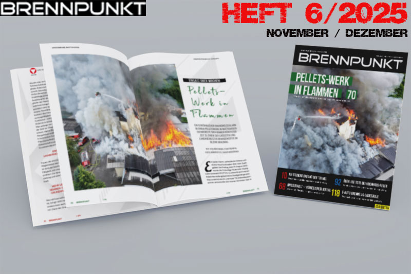 Feuerwehr-Arbeit pur mit jeweils einem Bild und auf einer Doppelseite.