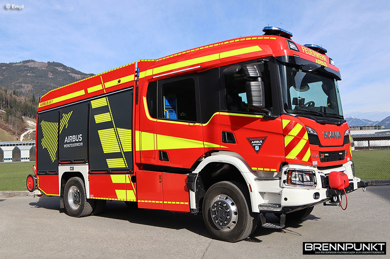 Das HLF-I auf Scania P 370 wurde für die Werkfeuerwehr Airbus am Standort Manching gebaut und bietet mit der CrewCab Platz für eine Besatzung von 1+5 Personen. Das Fahrzeug verfügt über einen 3.000 l Wassertank und einen 250 l Schaummitteltank. Der Geräteraum beherbergt die 3.000er Einbaupumpe mit CAFS Schaumzumischsystem. Am begehbaren Dach des Fahrzeugs ist ein pneumatisch aufklappbares Dachgeländer verbaut. Weiters befinden sich dort ein Dachkasten, Lichtmast, 360° BirdView Kamerasystem und eine elektrische Leiterabsenkvorrichtung für die 4-teilige Steckleiter inkl. Aufnahme für 4 Saugschläuche.