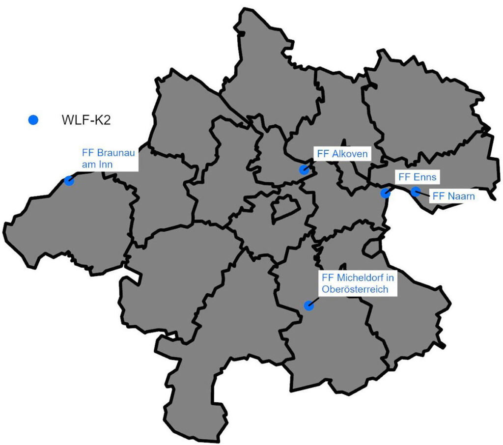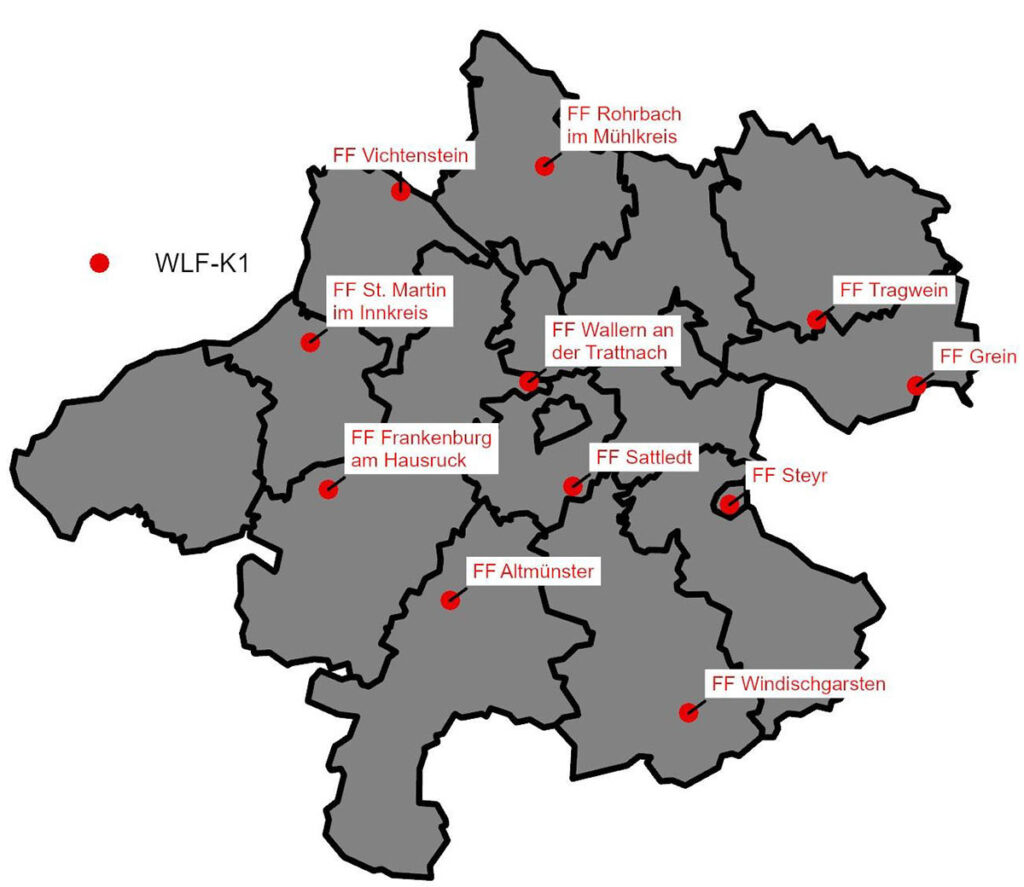 Mit der Ausstattung der Feuerwehr Steyr (Bezirk Steyr-Stadt) im Jahr 2024 wurde die Stationierung von WLF-K1 abgeschlossen und umfasst nun 11 Fahrzeuge dieses Typs in Oberösterreich.