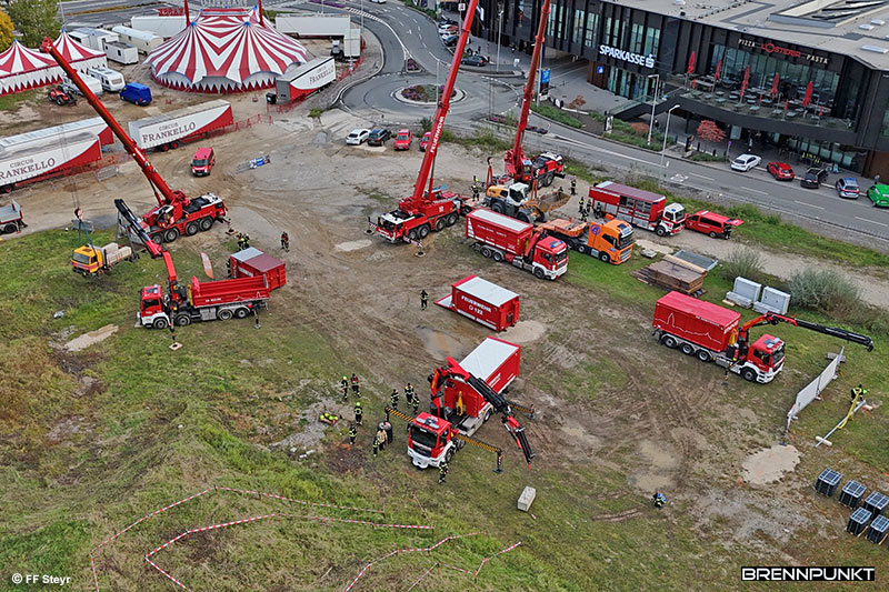 Einmal im Jahr organisiert der Oö. Landes-Feuerwehrverband für die Stützpunkte mit den schwereren Kränen eine gemeinsame Weiterbildung. Im Oktober 2025 war die Freiw. Feuerwehr Steyr an der Reihe.